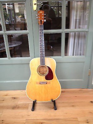 I Play a 1964 Levin Ls-18 Goliath acoustic guitar. Its a large bodied dreadnought with a warm, rich tone and it plays evenly across the strings. Good instruments have their own voice and this one sings really well on big loud strumming songs. It looks great to.