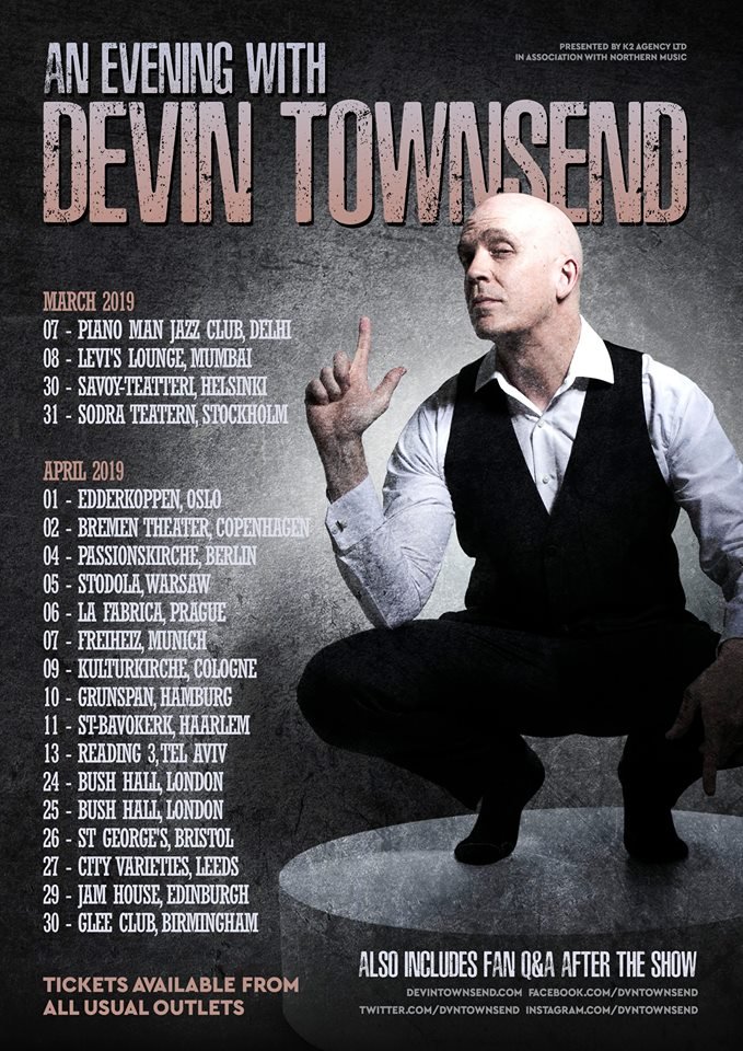 Devin Townsend has announced am April 2019 UK solo acoustic tour.
