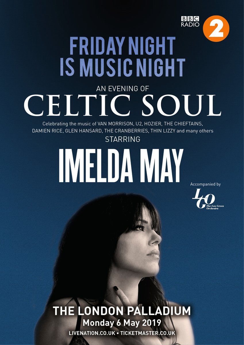 Friday Night Is Music Night presents ‘An Evening Of Celtic Soul’ Starring Imelda May takes place on Monday 6th May 2019 at The Palladium Theatre, London, United Kingdom.