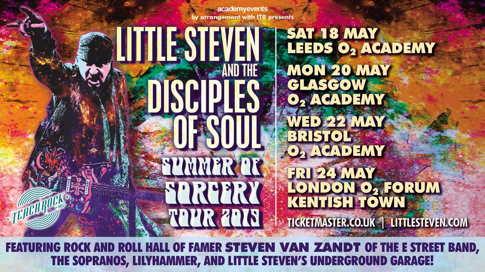 Little Steven And The Disciples Of Soul’s May 2019 UK Tour will visit the following venues: