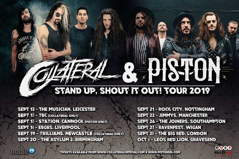 ‘Stand Up, Shout It Out!’ Co-Headline September/October 2019 UK Tour with Piston and Collateral will visit the following venues: