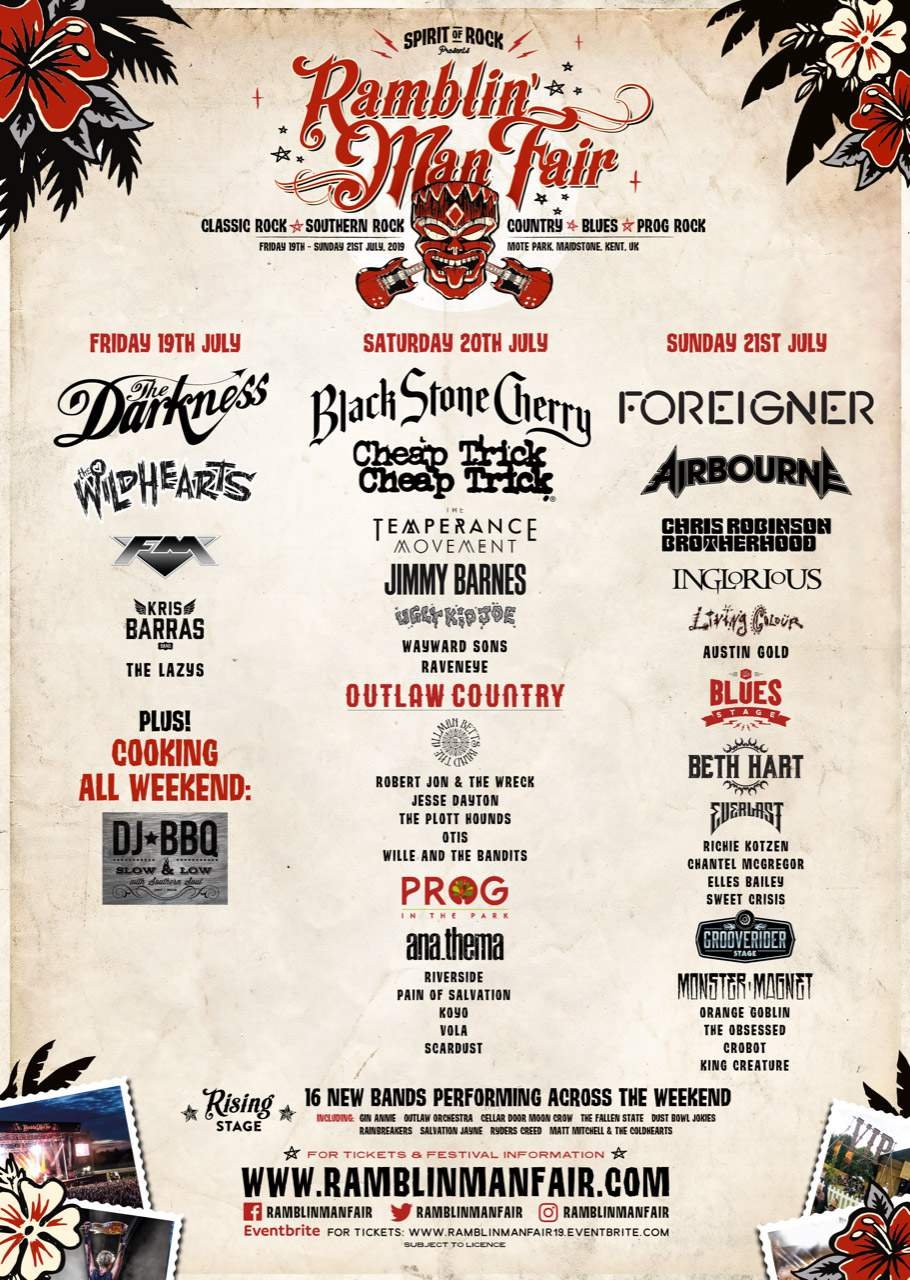 Once again Ramblin’ Man Fair is located at the stunning surroundings of Mote Park in Maidstone, Kent. Tickets to the event are on sale now. Newly added to the lineup are FM, Cheap Trick (Saturday Main Stage Special Guests),  Jimmy Barnes, Wayward Sons, RavenEye, Inglorious and King Creature.